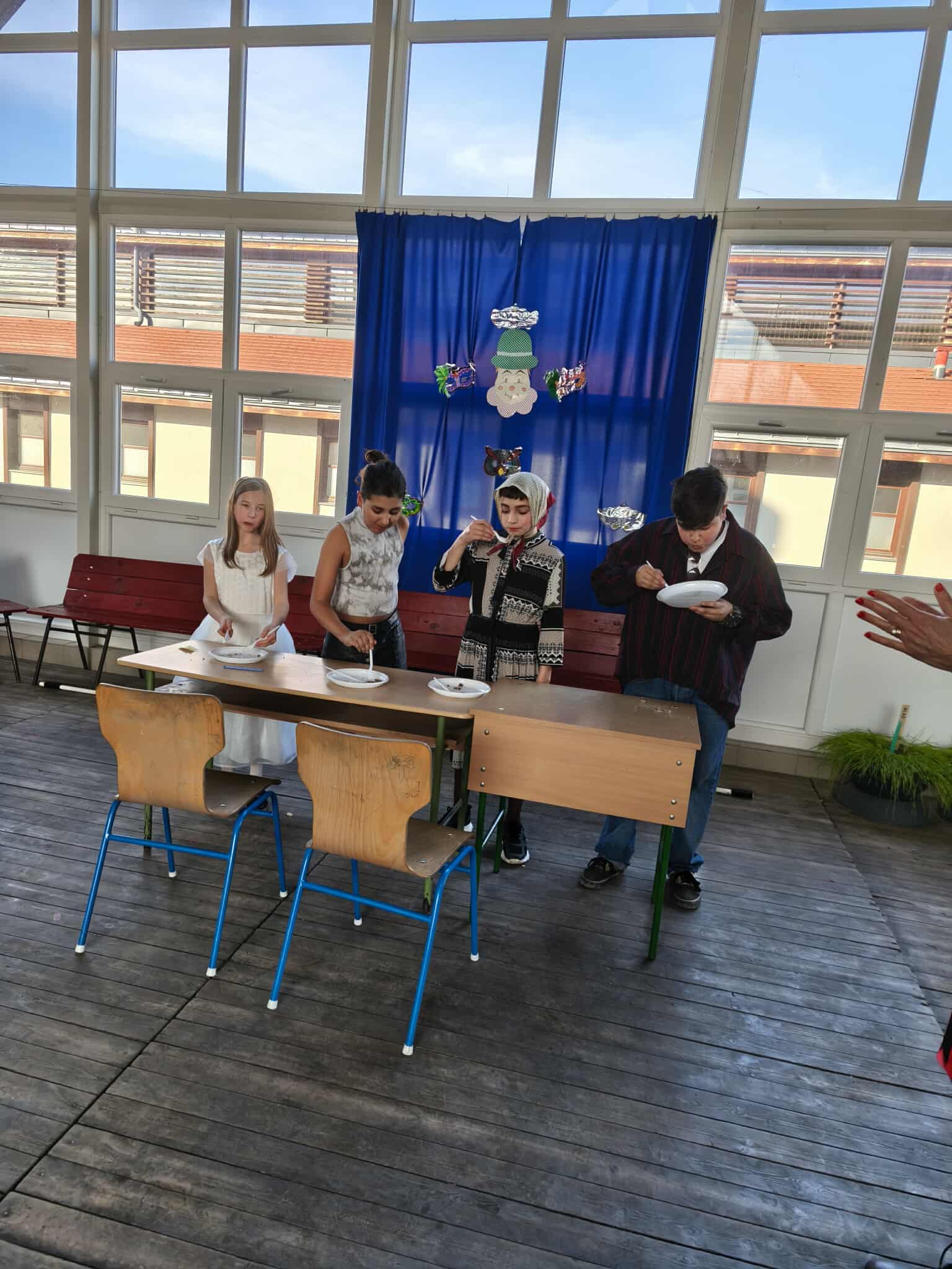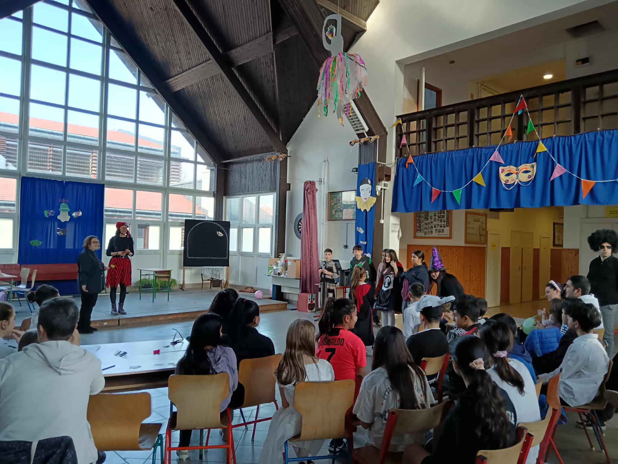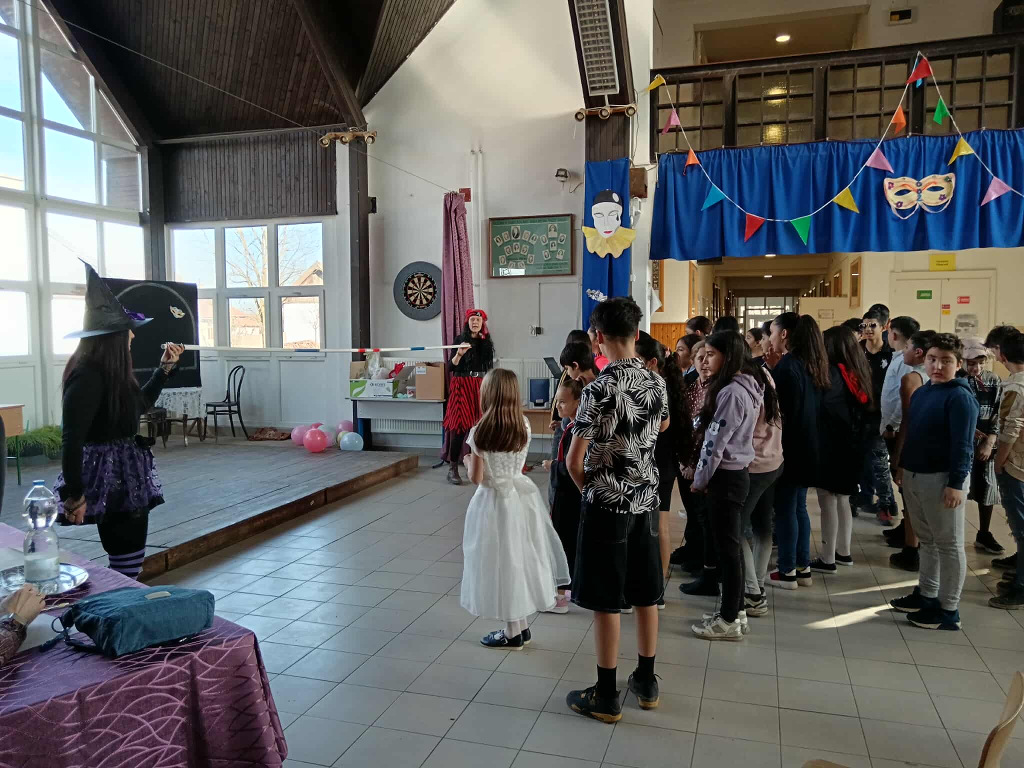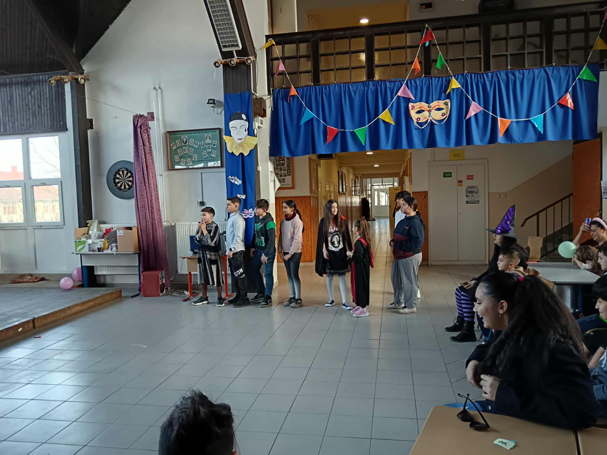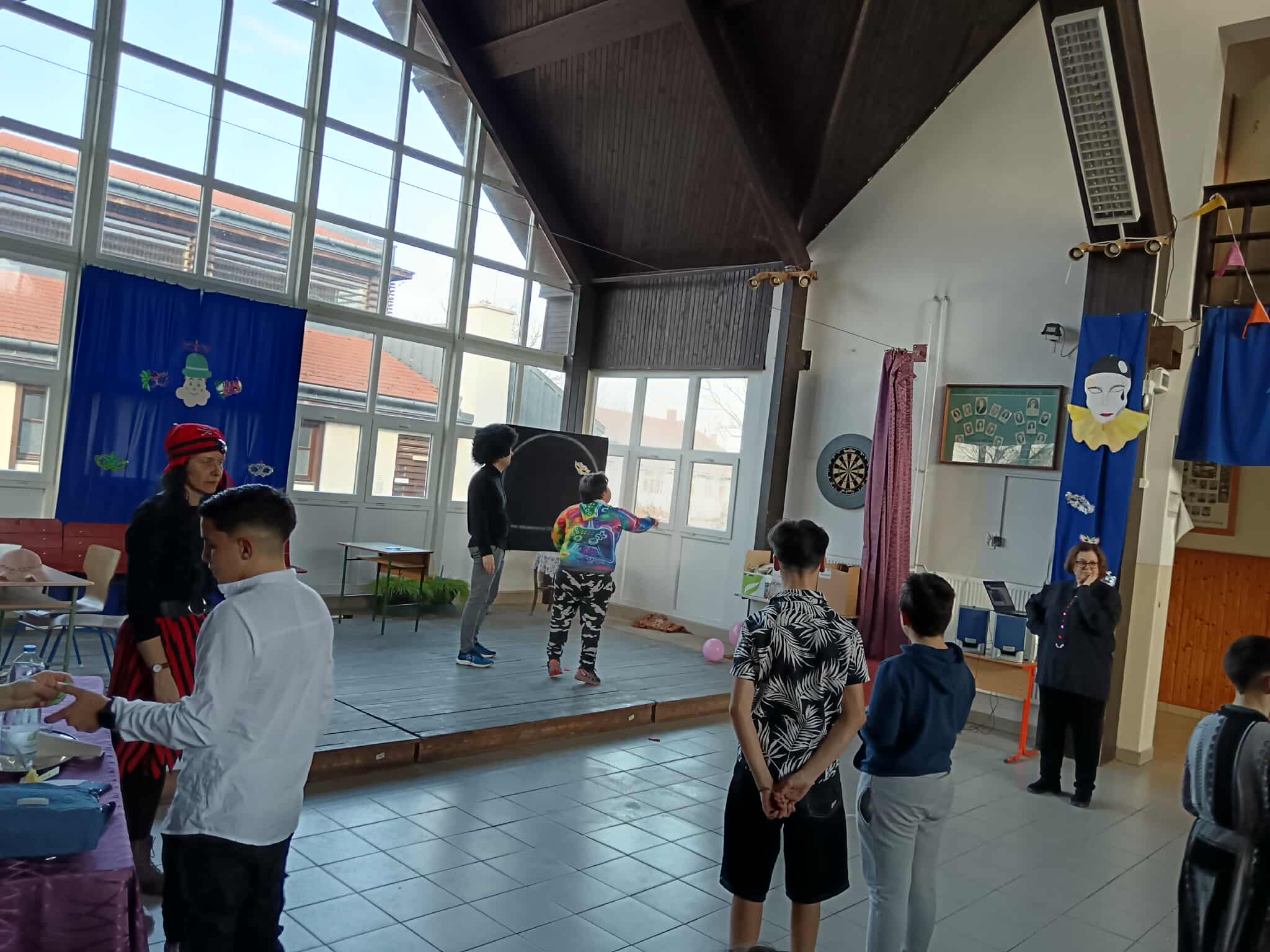 A jelmezes bemutatót játékos vetélkedő követte, ahol a diákok csapatokba rendeződve mérhették össze ügyességüket és tudásukat. A változatos feladatok között szerepeltek tréfás ügyességi játékok és vidám, gondolkodtató kihívások is. A jó hangulat és a nevetés végigkísérte a délutánt, amely remek alkalmat teremtett a közösségépítésre. A farsangi rendezvény ismét bebizonyította, hogy iskolánkban a tanulás mellett a közös élményeknek és a hagyományok ápolásának is fontos szerep jut.