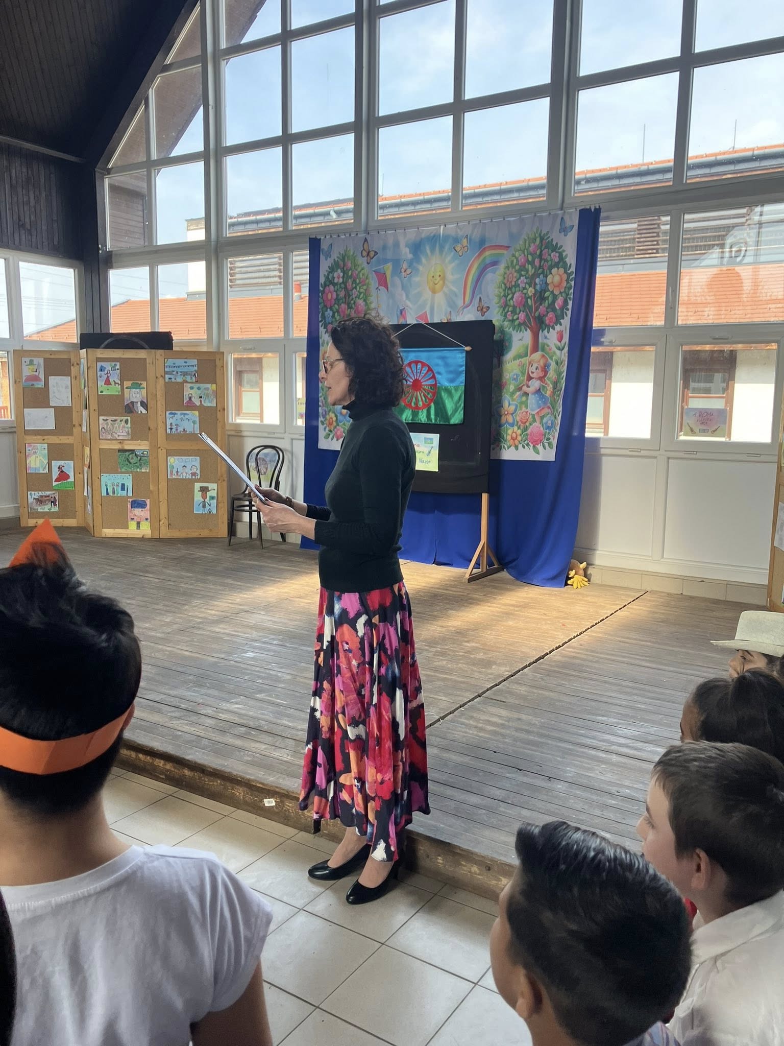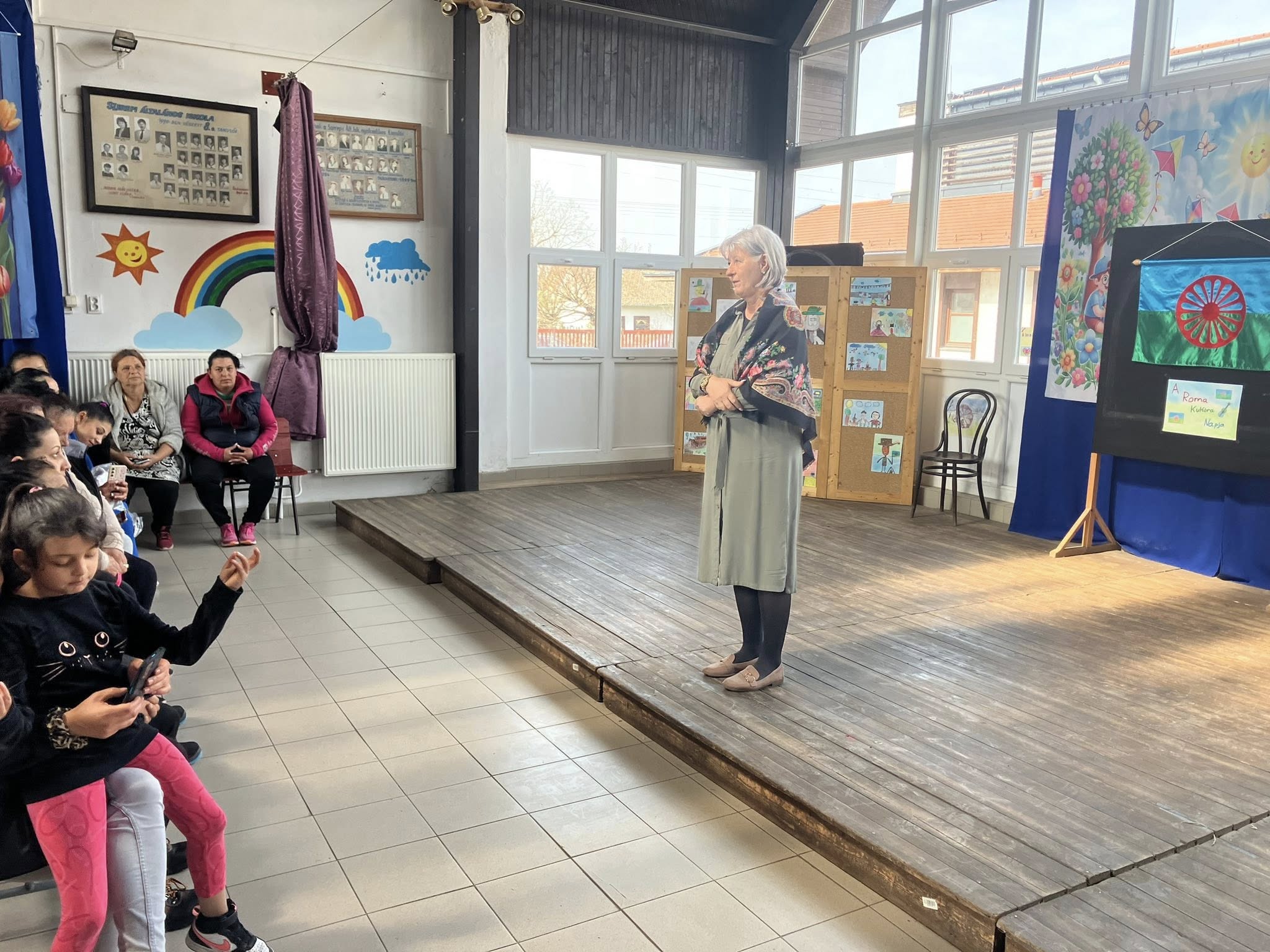 Az ünnepséget Faragóné Zöld Ibolya igazgató asszony nyitotta meg, majd közösen elénekeltük a magyar cigány himnuszt, amelynek megható dallamai megalapozták a rendezvény bensőséges és vidám hangulatát. Ezt követően Kenéz Szilvia tanárnő osztotta meg gondolatait a Roma Kultúra Napjáról, kiemelve, mit és miért ünneplünk ezen a napon.