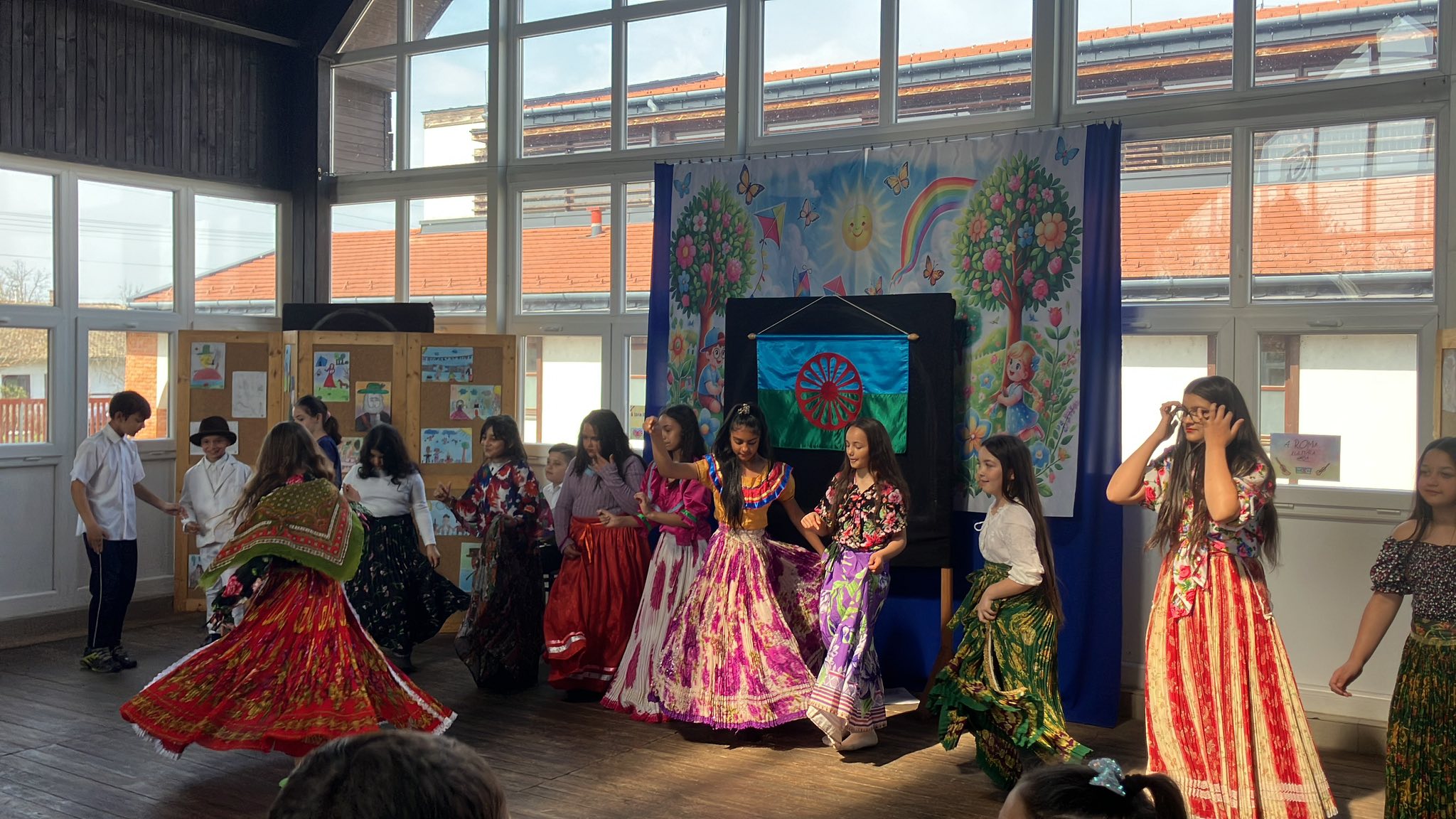 A műsort tanulóink színvonalas előadásai tették igazán emlékezetessé. A 3. osztály egy cigány mese feldolgozásával lépett színpadra, majd az alsó tagozatos, ezt követően pedig a felső tagozatos tanulók roma táncbemutatója következett, amely nagy sikert aratott a közönség körében.