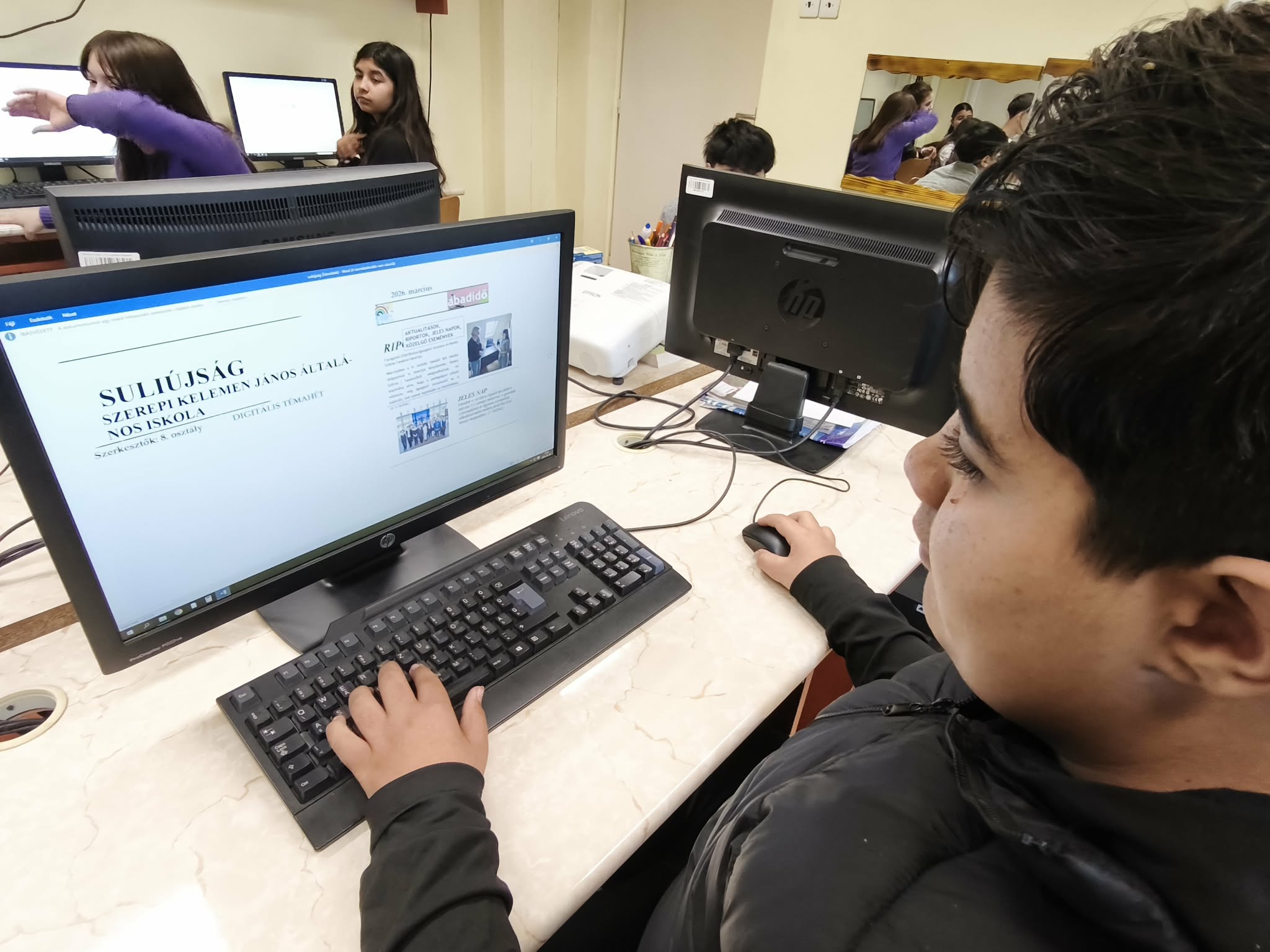 A 2026-os Digitális Témahéten iskolánk 4. és 8. osztályos tanulói vettek részt. A program során közösen egy színes és tartalmas suliújságot szerkesztettünk. A nyolcadikosok Word-dokumentumban dolgoztak, riportokat készítettek, és több cikket is megírtak az újság számára. A negyedikesek színes naptárt készítettek, amely az újság hátlapjára került.